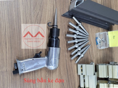 - Súng bắn ke đạn khí nén dùng để bắn viên đạn vào nhôm và ke để tạo ra góc ghép của cửa nhôm.