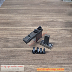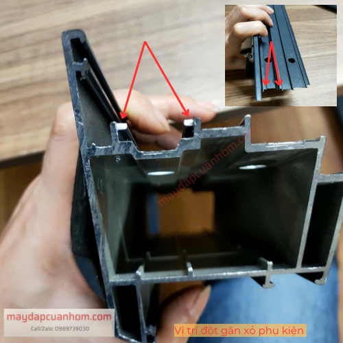 Lỗ đột trên cây nhôm: Đột mẩu gân đầu thanh nhôm để xỏ phụ kiện sau khi ghép góc cửa