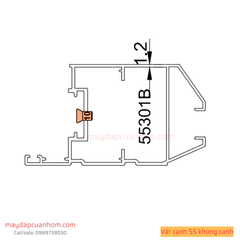 Sử dụng đột lỗ trên cây khung bao, khung cánh cửa đi, cửa sổ hệ vát cạnh 55, khung bao, khung vách cửa xingfa 55 (Đi kèm với U ốp để tăng chiều rộng cối đột, chống lắc khi đưa thanh nhôm vào đột.