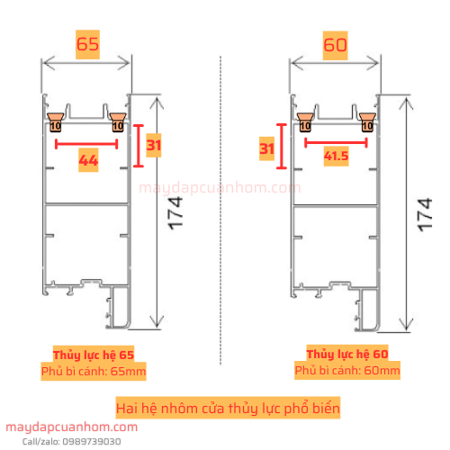 Có 2 hệ cửa thủy lực phổ biến hiện nay được các nhà máy nhôm sản xuất và gọi tên theo bản rộng của cánh cửa thủy lực là hệ thủy lực 60 và hệ thủy lực 65