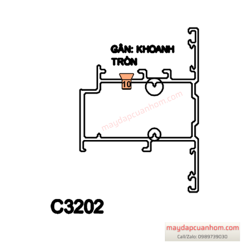 Lỗ đột trên cây nhôm: Đột lỗ phi 10 để lắp ke vĩnh cửu đầu ốc 10mm