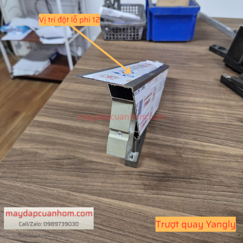 Đột lỗ phi 12 trên cây cánh tà cửa trượt quay Yangly để xỏ lục năng vặn ke góc để ghép góc cửa