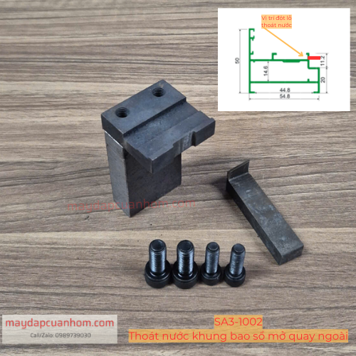 Đầu đột đột được gân trong (lỗ 1) và gân ngoài (Lỗ 2) trên khung cửa sổ XF55. Khi đột lỗ trong(lỗ 1) cần phải sử dụng đột bằng tay, lựa đưa đầu dao đột vào khoang trong của thanh nhôm.