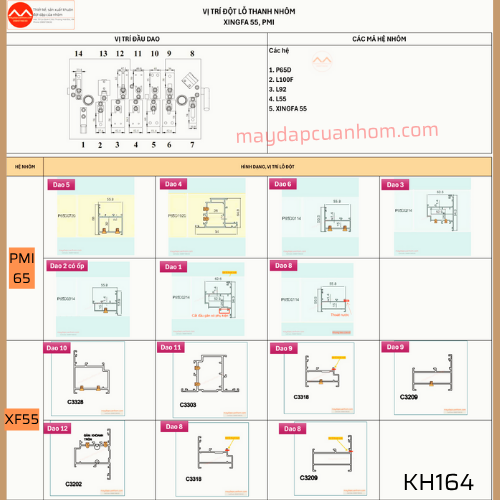 Đột dập cửa nhôm đa năng KH164 PMI XF55 ke đạn, ke vĩnh cửu theo yêu cầu